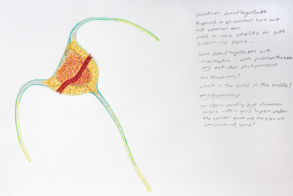 Colored Pencil Dinoflagellates are the second largest group of phytoplankton after diatoms. They can move somewhat by using their flagella and many of them migrate daily between the surface where there is more light for photosynthesis and slightly deeper water where there are more nutrients. Some kinds of dinoflagellates are mixotrophic meaning they both photosynthesize and eat other phytoplankton. Leave a Reply Cancel Reply Your email address will not be published. Name* Email* Website Comment Notify me of follow-up comments by email. Notify me of new posts by email.