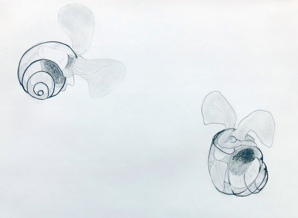 Graphite Pteropods are tiny planktonic sea snails. They swim by flapping their wing-like feet and eat by straining phytoplankton and smaller zooplankton from the water. Many of them spend the daytime in deeper water and swim up to the surface at night to feed on other plankton when they are less likely to be eaten by fish. Pteropods are vulnerable to ocean acidification caused by increased carbon dioxide in the atmosphere because the acidic water can dissolve their calcium carbonate shells. Leave a Reply Cancel Reply Your email address will not be published. Name* Email* Website Comment Notify me of follow-up comments by email. Notify me of new posts by email.