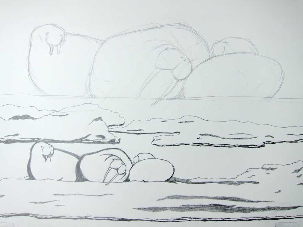 Graphite Another walrus study starting to explore how they interact with each other and their ice filled environment. Part of this drawing will probably end up as the basis for a woodcut print, so I drew it very graphically with clear lines and no gray tones with that in mind. Leave a Reply Cancel Reply Your email address will not be published. Name* Email* Website Comment Notify me of follow-up comments by email. Notify me of new posts by email.
