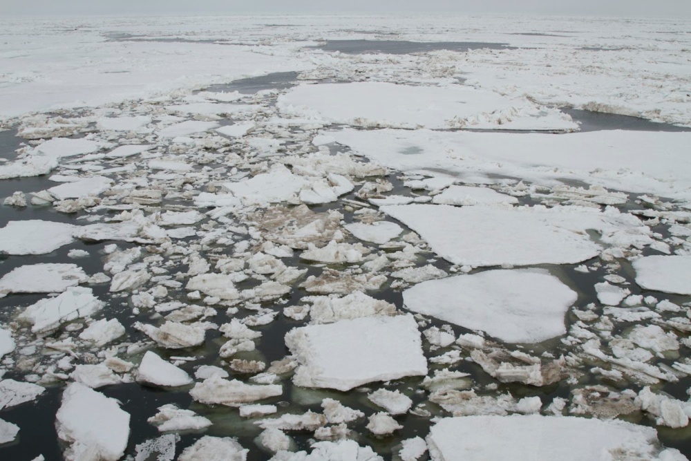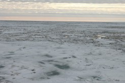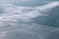 My favorite place on the Healy is the bridge, where you can survey the every-changing panorama of sea ice. There’s a chair exactly like the captain’s chair, but on the port (left) side, that’s available for any member of the science team. Occupying that seat makes me feel on top of the world. which in a way I am! During SUBICE 2014 I have a science rationale for spending time on the bridge ogling the ice. I’m privileged to participate in the cruise’s Ice Watch survey. Every two hours someone from the science party (my shift is at 22.00) takes a good look around and estimates the total extent of ice coverage, the type of ice, its thickness, the snow depth, the type of topography and a bunch of other things like the presence of sediment, algae and the preponderance of melt ponds. It may seem strange, but the ballpark figures of a bunch of human beings actually add up to a useful data set. While remote sensing (i.e. from satellites and airplanes) is valuable, it turns out to be unreliable at measuring such parameters as ice thickness. Eyeballs on the surface are key. Ice scientist Chris Polashenski, who’s leading the Ice Watch, explains that the survey helps him understand how data he collects at one particular floe on a given day, relates to the bigger sea ice picture. Chris’s research focuses specifically on measuring ice albedo — i.e. the ratio of reflected to incident light. Ice albedo is an important factor in climate change. Since snow-covered ice reflects a lot more sunshine back to the sky than open water, as ice extent diminishes there’s an “albedo feedback” loop. With less ice to bounce the sun’s heat back into the atmosphere, more of the sun’s energy is absorbed by the ocean, heating it up, thus in turn melting more ice. One of the most thrilling moments in the cruise was when we got stuck in multi-year ice. As the Healy was backing and ramming into two-meter thick ice, it seemed we were making slow if uneven progress. In matter of fact, we were drifting with the floe backwards faster than were were advancing with all props running at full power. A mix of first year and milt-year ice. The floe’s primary topography is ridges that are formed dynamically as plates collide. The rounded topography is indicative of multi-year ice.Nilas is newly formed surface ice. When plates are broken and collide, their sheets interlace to form finger rafting.Closer view of Nilas finger rafting, with frost flowers adding texture to the ice surface.Brash is broken bits of jumbled ice. Here brash is seen interspersed with small ice floes.First year ice floe with several early stage melt ponds forming.The chair. Leave a Reply Cancel Reply Your email address will not be published. Name* Email* Website Comment Notify me of follow-up comments by email. Notify me of new posts by email.