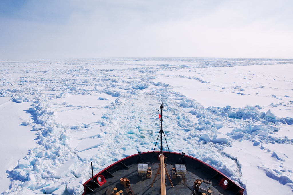 It’s shortly after midnight and I’m standing at the portside rail with a couple of other gawkers squinting into bright sunlight as Healy heaves up chunks of ice over two meters thick, some larger in area than the average one-bedroom New York apartment. The ship backs and rams, and when she backs, the prop wash propels broken ice forward of the bow where it stacks and congeals, further impeding her way. A one-time visitor might think she’s in death throes the way she shudders, lurches, slews, and vibrates. She’s been doing that a lot during the last week, but never like this, never such strain, never so loud as to preclude normal conversation. And we’re going nowhere. (At lunch today Chief Engineer Tom Lowry told me that during the night they’d cranked on all four engines—and in one hour she’d made good three ship lengths.) No one aboard has ever had her in ice this dense. Earlier, I wrote that the Chukchi spawns no multi-year ice, yet last night and still today, the upturned blocks of ice reveal their cross sections where we see the deep blue hue that distinguishes multi-year ice from first-year ice. I ask one of our ice scientists if that statement was too categorical? No, he says, the Chukchi melts out entirely every summer, so if that was multi-year ice, then wind and currents probably delivered it here from the chaotic, broken-glass geography in the Canadian Archipelago. It’s hard not to perceive the solid ice field as landscape, inert and constant. But of course this ice is floating (because it’s less dense than seawater), and therefore governed by ocean and atmospheric dynamics. Floes grind and crash against one another, heaving up high hummocks and rumpled pressure ridges as the currents and the wind quarrel over dominance. Floes grind and crash against one another, heaving up high hummocks and rumpled pressure ridges as the currents and the wind quarrel over dominance. In the Greenland Sea several years ago, I took informal ice-piloting lessons from the captain of the British Antarctic Survey ship James Clark Ross, who has decades of experience in both polar regions. He said that ice pilots used to operating in Antarctica are unpleasantly surprised when they come up against Arctic ice, far harder than its Southern Hemisphere counterpart. This is due to the close continental quarters in the Arctic, where gyring currents further congeal and harden the ice as they spin it around the ocean basin, grinding it against shore-fast ice. The Ross, an ice-strengthened ship, not an icebreaker, would have no business in these “waters,” where even Healy, a full-on icebreaker is forestalled. However, today not withstanding, there are some subtleties to piloting her in the ice, as Captain Reeves generously explained in his expansive stateroom. (“The biggest in the Coast Guard,” he said.) First, he listed three basic principles: speed management, momentum/swing management, and predictive versus reactive thinking. Healy has a pronounced knuckle in her bow just above the waterline. She breaks ice not by crashing through it, but by bending it under the weight of the ship as the knuckled bow allows her to ride up on the floes. To optimize this effect, you want to enter the ice at seven knots, but naturally the impediment will slow the ship, so you add power to maintain momentum; don’t let the ice take over. Ideally, you enter a ridge of ice at 90° and keep the power on until the stern, not just the bow, reaches clear water. Healy is good at going straight ahead, but, slab-sided, she doesn’t turn very nimbly. So the prudent pilot will set up for the ice by completing the turn to a perpendicular course several ship lengths prior to the encounter. Sometimes, of course, conditions will force you to hit the ice at an angle, say, on the port bow. In that case, the impact will kick her bow to starboard. To counter this predictable event, you want to enter the ice with some degrees of port rudder—again, don’t let the ice take over by directing your bow away from your intended course. And speaking of awareness, always mind the fundamental nautical elements. The current’s set and drift and the wind’s angle and velocity will affect your heading and the behavior of the ice ahead. And then there’s this matter of backing and ramming that we saw so much of today. The bow is her strong point; nothing nautical is indestructible, but the bow is as close as anything gets. Her weak point lies astern, with the propellers and rudder. Healy’s props, 16 feet in diameter, have fixed blades, which are less vulnerable than variable-pitch props. However, all propellers and the still more vulnerable rudder always need to be protected. When backing, the rudder should to be kept amidships, that is, in a fore-and-aft position. Any rudder angle when backing will put untoward strain on this vital control surface. Unlike cars, all vessels from sailing dinghies to super tankers turn by the stern. Therefore, trying to turn in ice also jeopardizes the propellers. Before actually backing, you want to use the props to chop and expel as much ice rubble as possible; it’s called flushing. And repeatedly ramming the same area of ice increases the risk of getting beset. Instead, widen the track by striking the ice in a herringbone pattern. Finally, Captain Reeves warned against entering any lead (a channel of open water between floes) narrower than the ship’s beam. “We’re not only breaking ice, we’re also displacing it.” So you’ve got to think about where the displaced ice will go before you enter it. Tempting though the lead may be, you can easily get stuck in it. So you want to attack the floe adjacent to the lead, thereby using the lead as a soft place for the shunted ice to go. “There’s more to it, but those are the basics. Oh, wait, one other thing. Observe your track astern. If your track closes rapidly, this indicates the ice is under heavy pressure, and you have reason for c