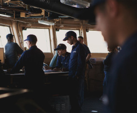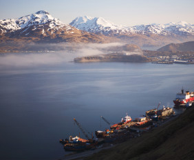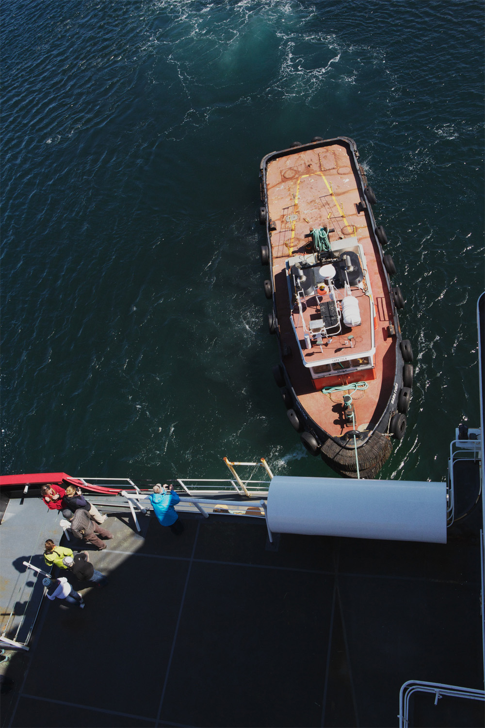 Toward the Chukchi Sea Dallas Murphy May 17, 2014 Dispatches 1 Comment “Passing left at two-four-zero degrees,” called the helmsman as twin tugs, one pushing, the other pulling, spun Healy in her own length away from the wharf. “Passing left two-three-zero degrees.” “All ahead forty shaft turns.” After the big ship had cleared the harbor entrance, the navigator called for a port turn pointing her bow toward the open ocean. Heading seaward from Dutch Harbor And so, at 1650 on May 13, 2014, we left Dutch Harbor on Unalaska Island in the Aleutian Island chain (incidentally, the only piece of U.S. territory ever invaded by a foreign power, the Japanese, since the War of 1812.) We’ll steam north for three days across the Bering Sea, through the Bering Strait and into the Chukchi Sea. Since this is pretty obscure geography, let’s situate the Chukchi in its Arctic context. But, first, just what is this region called the Arctic? What are its borders and boundaries? Attention on the bridge We might use the Arctic Circle, 66° 33’ North latitude, and say that everything north of the circle is the Arctic, everything south of it is not. The Greeks and the Babylonians before them recognized that in the Northern Hemisphere, stars circled one central star and that some stars rose and set during the night, while others remained constantly visible. The Greeks identified a circle in the sky that marked the boundary between rising and setting stars and those always visible. They noticed that the circle passed through the constellation of Arktos—the Great Bear—and so what they called the Bear’s Circle we call the Arctic Circle. But it’s not quite so simple. That perfectly round circle excludes places such as Hudson Bay, Labrador, and parts of Siberia that share distinctly Arctic conditions. Then what about an “ecological” border—say, the timberline, beyond which trees must give way to tundra? Yes, but the timberline wavers. In Siberia and Canada trees give up well south of the Arctic Circle, while in Scandinavia, they grow far north of it. This, too, is the Arctic, and so, in that sense, there are two Arctics, one terrestrial, one oceanic. The question of precise borders will grow increasingly more important as the Arctic-rim nations decide, peacefully one hopes, who owns the resource-rich Arctic. For our purposes, however, we can concentrate on the oceanic part. Healy on the eve of departure The Arctic Ocean basin is almost entirely enclosed by continents. There are two major routes by which water—and ships—can enter and exit the basin, a relatively narrow one through the Bering Strait and a large one between Greenland and Norway. The central basin of the ocean is ringed by relatively shallow “marginal seas,” among them the Barents, Kara, Laptev, East Siberian, Beaufort, Lincoln—and the Chukchi. Nature doesn’t care about these fine distinctions, only humans who, to make sense of things, need to name them. Perhaps in simpler times, ocean scientists could distinguish as the Arctic Ocean that part of the basin that remained more or less permanently frozen, but no longer, not with the seemingly inexorable loss of sea ice. So, geographically speaking, the Arctic Ocean encompasses the entire basin, including those marginal seas, frozen or not, north of Greenland, Scandinavia, Russia, the United States, and Canada. A view from Starboard To me and to others now aboard Healy, the Arctic is a wonderland. There’s something up here, something in the slant of light on fractured sea ice and the distant saw-toothed mountain crests, in the blue-ice glaciers and in the very air of the Arctic that reaches out and grabs certain people—it has for centuries—and never lets go. When ashore and going about their lower-latitude life, such people sometimes think about that crystalline light, the silence and timeless stillness in the land- and seascape, and they recall that cold, starry night when the Aurora performed for hours its mystical extravagance. I was in the Arctic aboard the Norwegian research vessel Lance northeast of Greenland seven months ago along with several of our present shipmates, and I’ve missed it with something akin to homesickness. And now after the excitement of departure, as the snow-clad mountains on Unalaska fade astern and we feel the seaway under foot, that quiet sense of expectation inherent to the beginning of any long voyage, when all things are possible, settles over the ship. Our destination – the Chukchi Sea – North of the Bering Strait One Response Bob Pickart May 25, 2014 Brilliant stuff, Dallas! Reply Leave a Reply Cancel Reply Your email address will not be published. Name* Email* Website Comment Notify me of follow-up comments by email. Notify me of new posts by email.