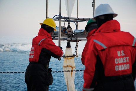 The LOKI net is one of the tools the team are using to understand the biology of the Chukchi Sea. The net funnels plankton past a camera as it is drawn upwards through the water. The weave is so fine on the net that micrometer scale plankton are trapped inside. Moritz Schmid is in charge of this instrument and analyses the pictures captured by the Loki. He’s looking at things larger than 100 micrometers, mostly zooplankton, to determine how many of each type are around. As of a week into the expedition, he is seeing very little deeper that 20 cm down because all the zooplankton are feeding off the algae that lives on the bottom of the ice. As the phytoplankton begin the bloom in the water later in the season, he expects to find more lower in the water as the feast reaches greater depths. 2 Responses Patrick Arsen June 1, 2014 Our son is currently assigned on the Healy and couldn’t be more proud of him and all the crew. You guys are doing a great job! And it’s just nice to be see a little part of his world. Thanks!!! Reply Ben Harden June 3, 2014 Hi Patrick, Thanks for the comment – glad you’re enjoying an insight into Healy life. Your son and the rest of the coastguard really do great work out here! Ben Reply Leave a Reply Cancel Reply Your email address will not be published. Name* Email* Website Comment Notify me of follow-up comments by email. Notify me of new posts by email.