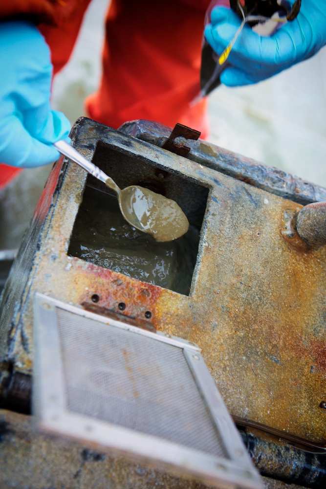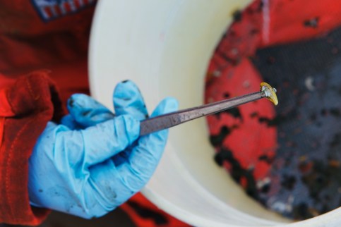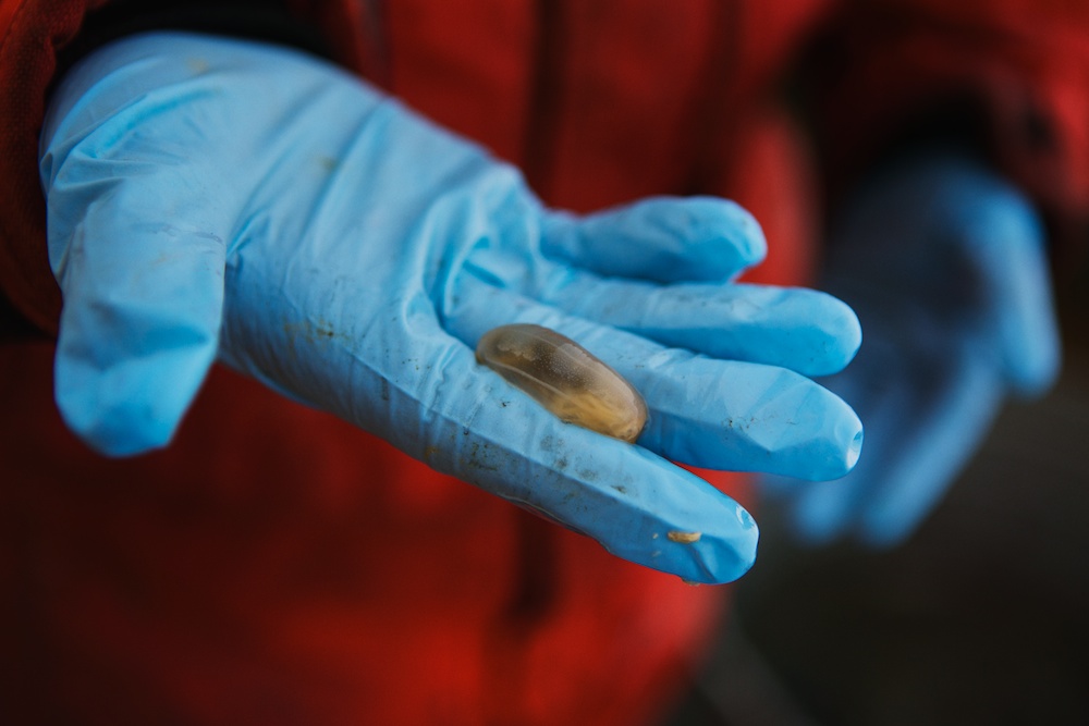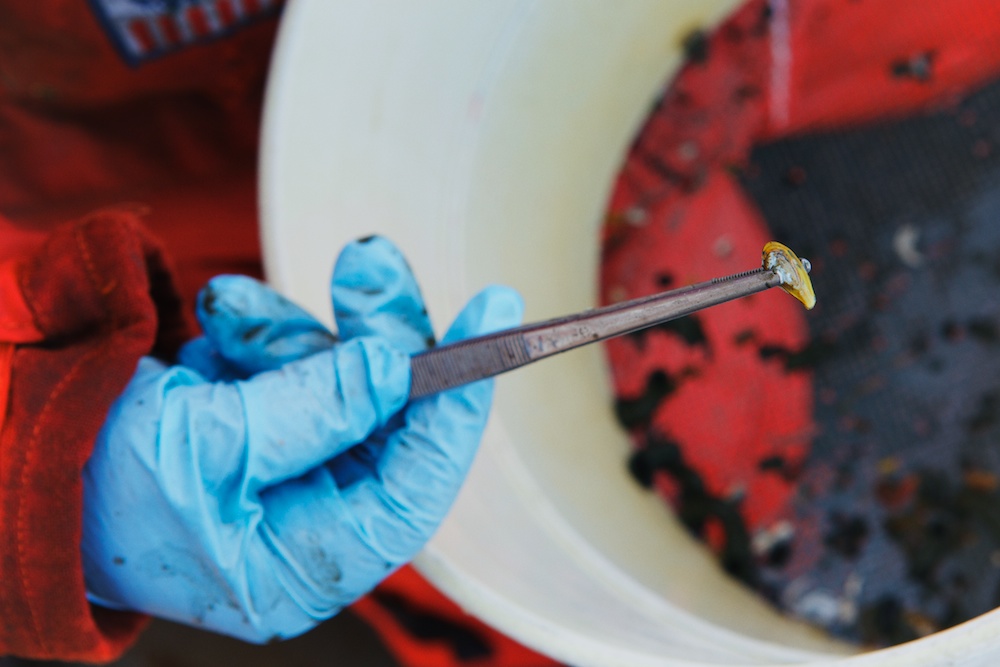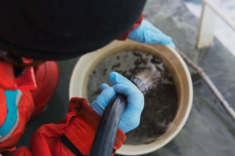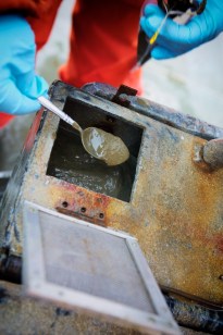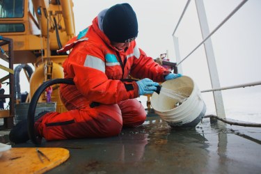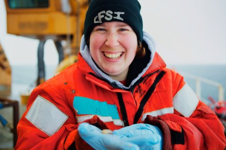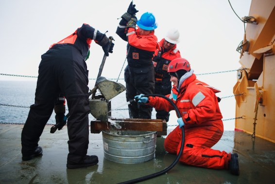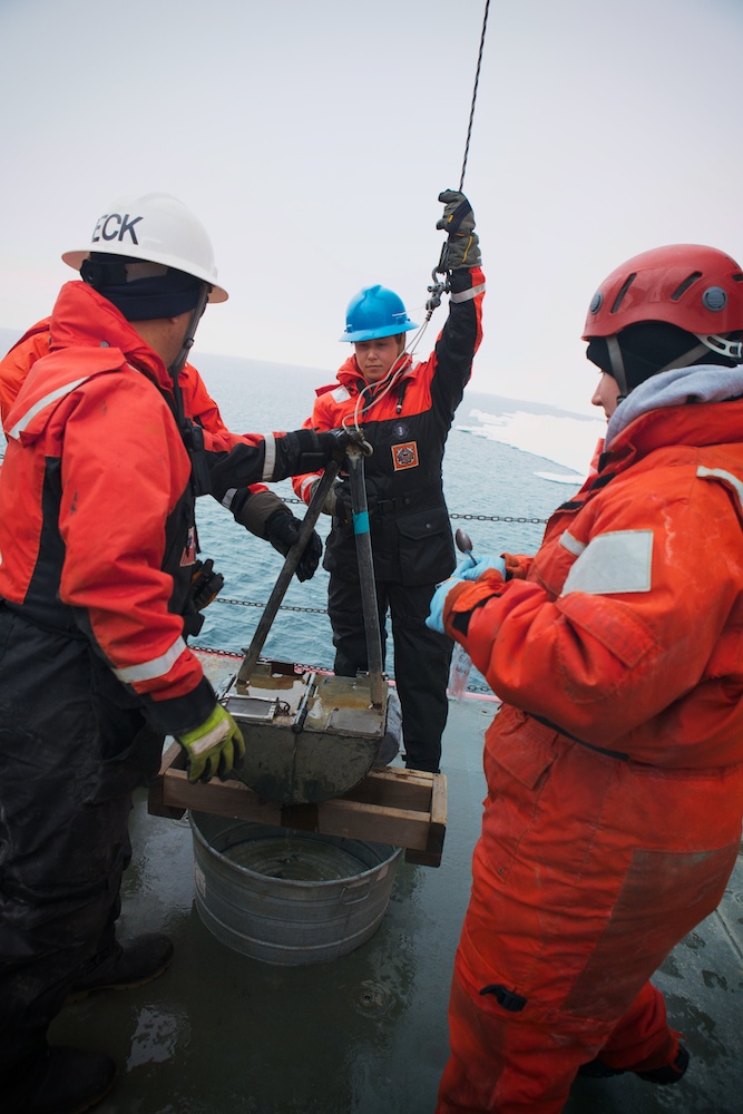 The Van Veen Grab is an instrument used to collect sediment from the ocean floor. It’s a clamshell bucket made of stainless steel that’s lowered from the Healy’s fantail using a winch. Biologist, Tanja Schollmeier extracts bottom-feeding animals from the sediment sample to test them for a biomarker that indicates whether they are eating mostly ice algae or phytoplankton. Knowing where the animals’ food source comes from helps Tanja determine how reliant they are on the Arctic’s receding sea ice. Leave a Reply Cancel Reply Your email address will not be published. Name* Email* Website Comment Notify me of follow-up comments by email. Notify me of new posts by email.